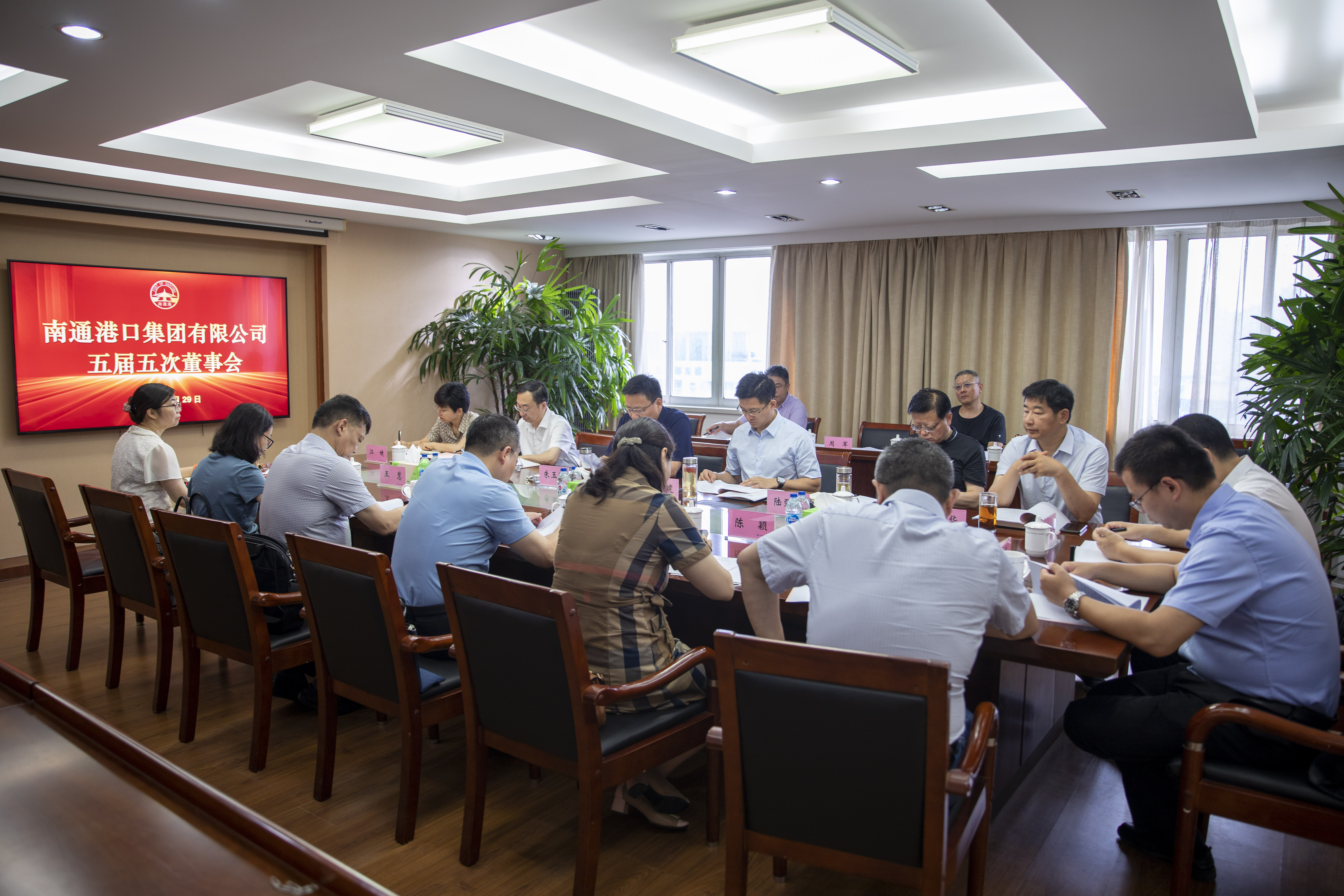 6月29日上午,南通港口集團(tuán)有限公司第五屆董事會第五次會議在港口大廈八樓會議室召開。集團(tuán)黨委書記、董事長朱玉強(qiáng),黨委副書記、總經(jīng)理、副董事長劉建,副董事長崔劍,董事、黨委副書記、工會主席吳亞華,外部董事陸強(qiáng)新、江婕、許雪良、張海榮、陳穎等董事會全體成員出席會議。會議由集團(tuán)黨委書記、董事長朱玉強(qiáng)主持。