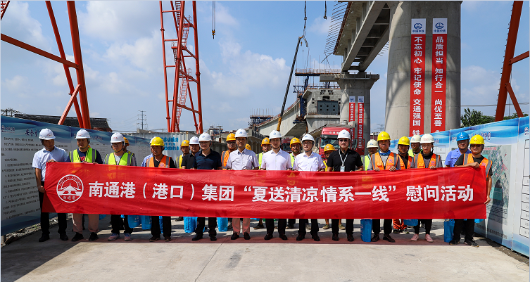 7月15日下午,朱玉強(qiáng)、吳亞華一行來(lái)到橫港沙基地,看望慰問(wèn)了江海港務(wù)分公司和碼頭管理公司一線(xiàn)職工,將消暑慰問(wèn)品一一送到職工手中,感謝他們?yōu)槟贤ǜ鄹哔|(zhì)量發(fā)展付出的辛勞和汗水,并要求有關(guān)部門(mén)合理安排作業(yè)時(shí)間,避開(kāi)高溫時(shí)段、備好防暑物品,切實(shí)保障廣大職工的身體健康和勞動(dòng)安全。