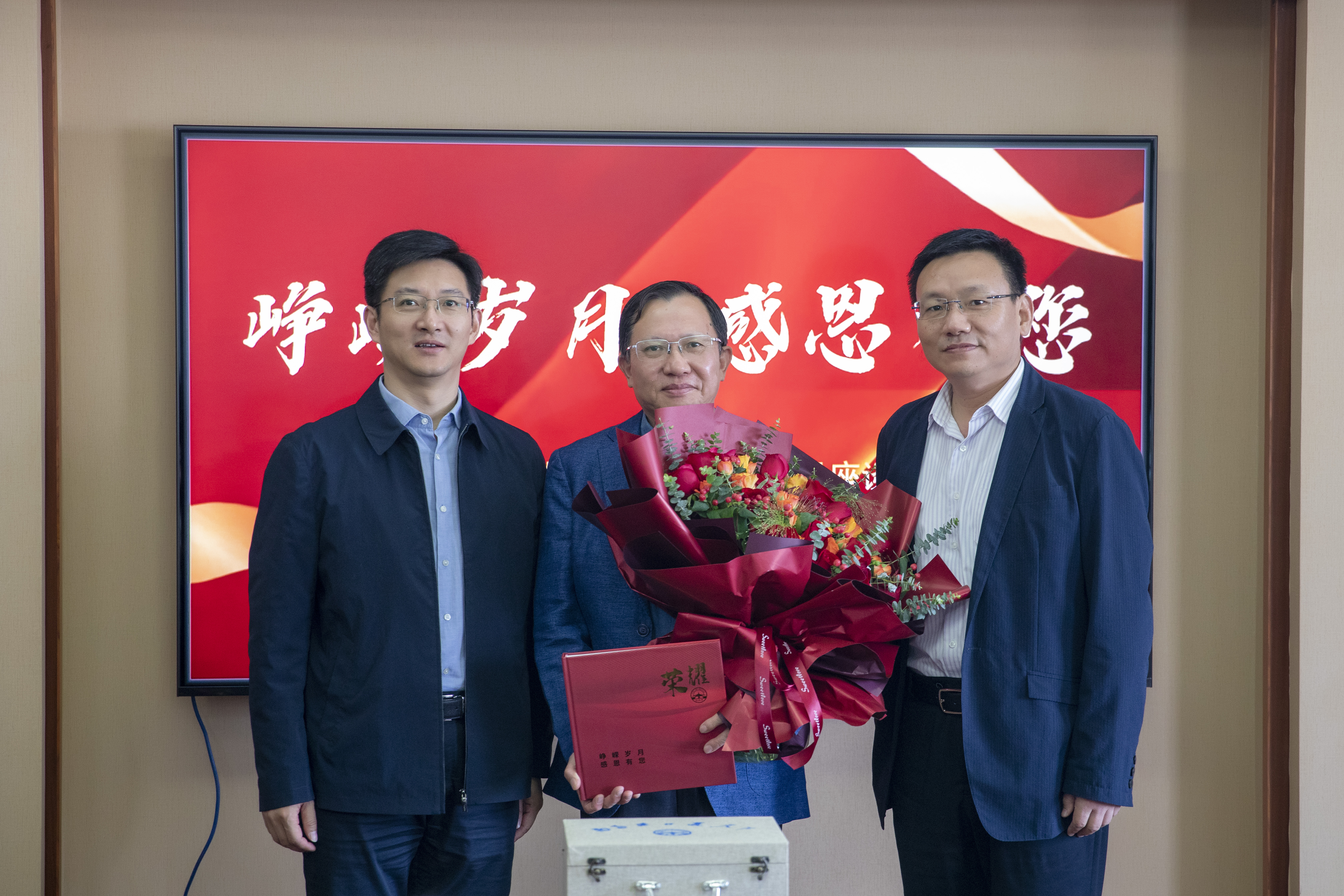 座談會上,朱玉強(qiáng)和劉建代表集團(tuán)向葛建華同志贈送紀(jì)念冊、紀(jì)念品和鮮花。