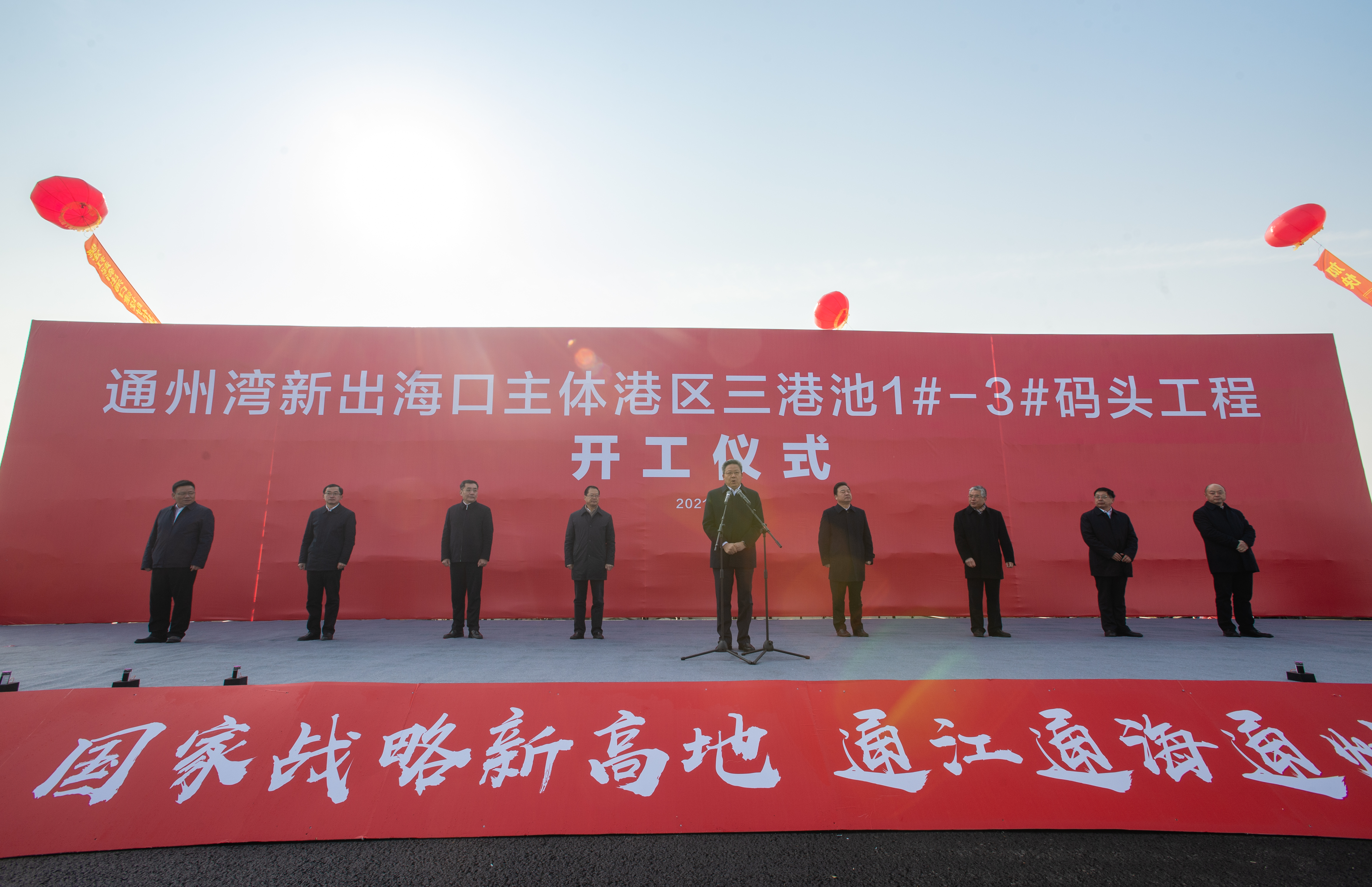 2021年12月30日上午,通州灣新出??谥黧w港區(qū)三港池1#-3#泊位碼頭工程正式開工,標(biāo)志著通州灣主體港區(qū)正式邁入“深水大港”時(shí)代。南通市委副書記、代市長吳新明宣布開工。南通市委常委、常務(wù)副市長、通州灣港口開發(fā)建設(shè)委員會主任、通州灣示范區(qū)黨工委書記陸衛(wèi)東,南通市人大常委會副主任陳俊,市政協(xié)副主席金元,市政府秘書長凌屹、副秘書長王國平,通州灣示范區(qū)黨工委副書記、管委會主任施宏杰,中交第三航務(wù)工程局有限公司董事長王世峰,南通港(港口)集團(tuán)有限公司黨委書記、董事長朱玉強(qiáng),黨委副書記、總經(jīng)理、副董事長劉建出席活動(dòng)。通州灣港口開發(fā)建設(shè)委員會常務(wù)副主任施渠平主持開工儀式。