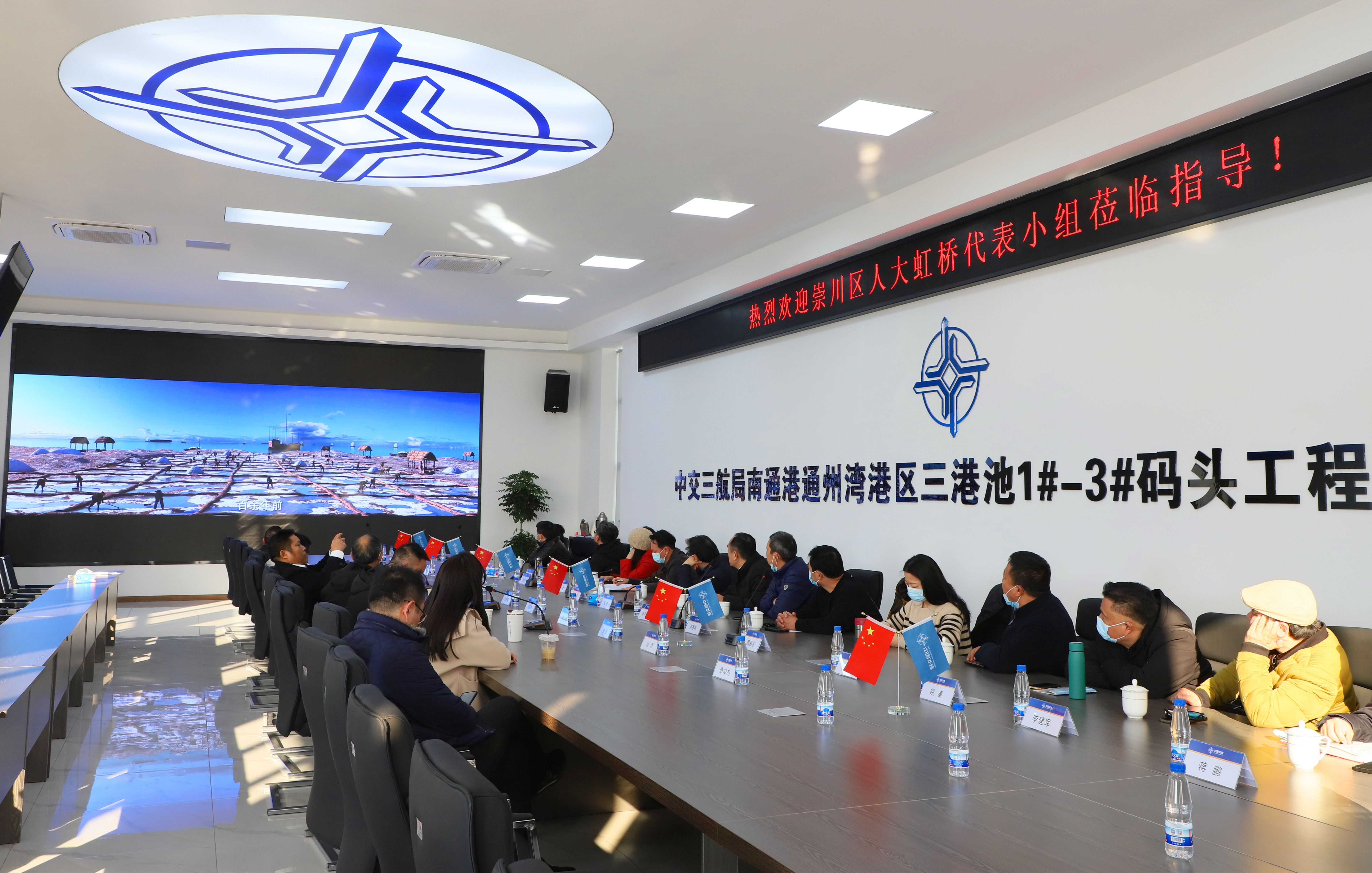 調(diào)研組實(shí)地察看了南通港通州灣港區(qū)三港池1-3碼頭工程現(xiàn)場(chǎng),聽(tīng)取了項(xiàng)目實(shí)施情況和工作推進(jìn)情況。全體組員在項(xiàng)目部會(huì)議室觀看了通州灣示范區(qū)宣傳片和南通港通州灣港區(qū)三港池1#-3#碼頭工程介紹短片。