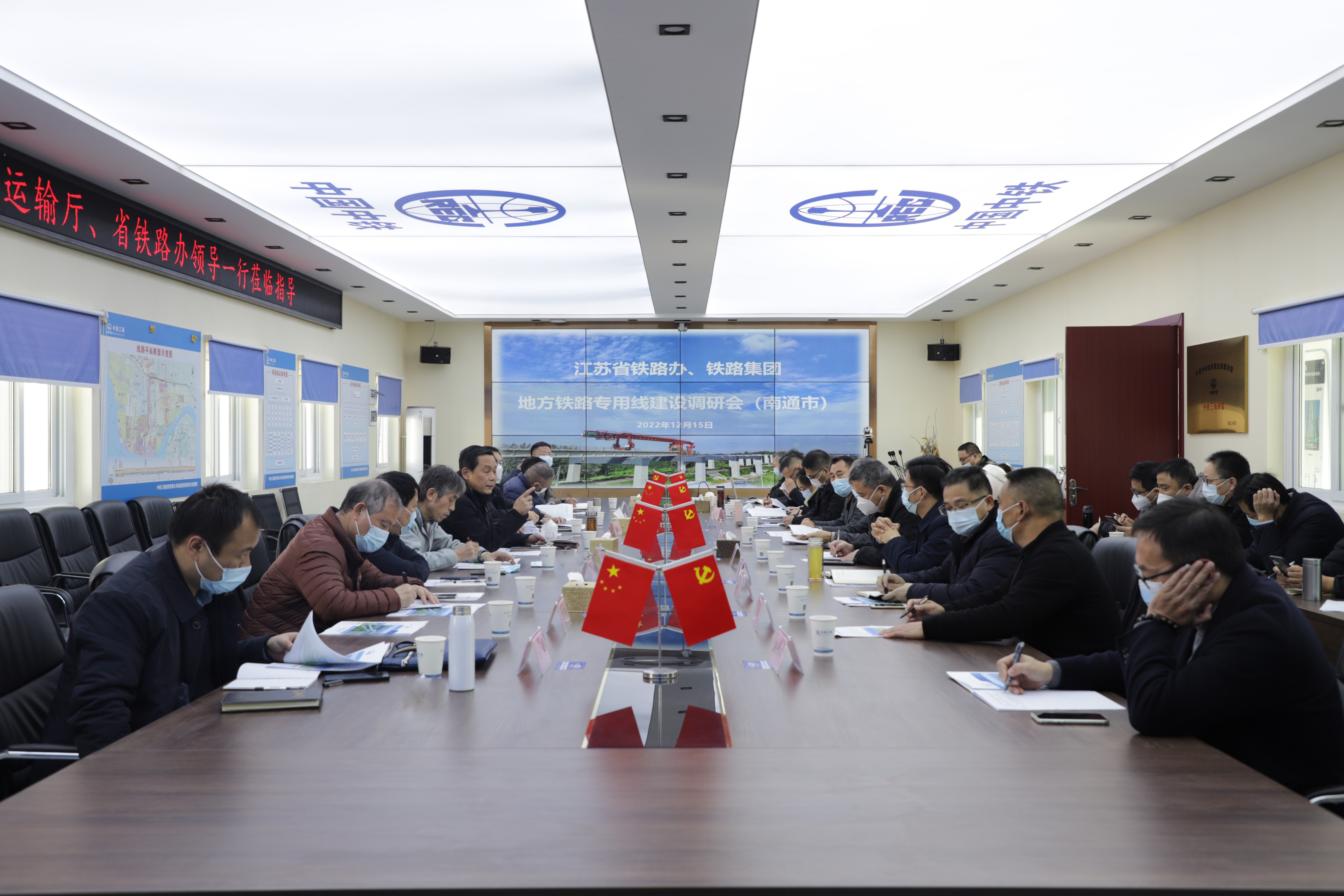 12月15日,省交通運(yùn)輸廳一級(jí)巡視員丁軍華,省鐵路辦建管處處長(zhǎng)賁志松、運(yùn)法處處長(zhǎng)馮煌飛、財(cái)審處處長(zhǎng)王寶祥等一行前來(lái)南通港疏港鐵路一期工程開(kāi)展地方鐵路專(zhuān)用線建設(shè)專(zhuān)題調(diào)研,并進(jìn)行了座談交流。南通市交通運(yùn)輸局黨委委員、鐵路辦主任助理張志忠,南通市鐵路辦副主任黃建東,海門(mén)區(qū)政府黨組成員成建平,省鐵路集團(tuán)運(yùn)營(yíng)公司董事長(zhǎng)趙瑋,南通港(港口)集團(tuán)黨委副書(shū)記、總經(jīng)理、副董事長(zhǎng)劉建,海門(mén)區(qū)交通運(yùn)輸局、南通港集團(tuán)通海鐵路建設(shè)公司及南通沿海開(kāi)發(fā)集團(tuán)、洋呂鐵路開(kāi)發(fā)建設(shè)公司等單位相關(guān)負(fù)責(zé)人陪同調(diào)研。